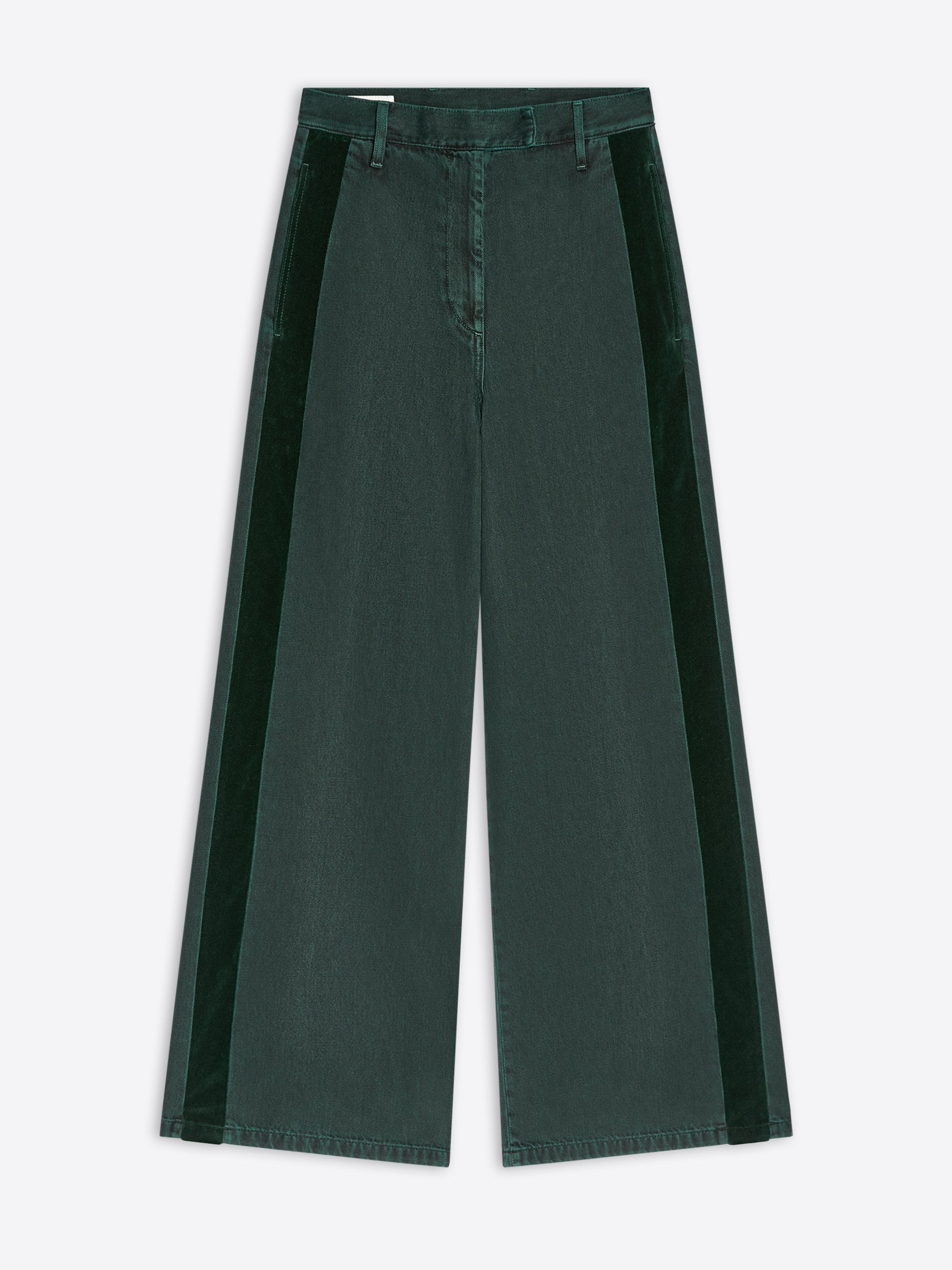 Regular fit wide-leg pants in heavyweight dyed cotton denim, with side velvet tapering. DETAILS - 100% Cotton. - Side velvet tapering. - Regular fit. Mid rise. Wide leg. Side slit pockets and back welt pockets. Belt loops. Hidden front closure. - Ref: 252-010958-2397 SIZE AND FIT Model is 178 cm / 70 inches and wears size 36.