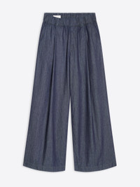 Wide leg elasticated denim pants with pleats. DETAILS - 100% Lightweight Cotton. - Loose fit. Wide leg. Single deep pleat. Side slit pockets and back jetted pockets. Elasticated waistband. - Ref: 252-020926-2382 SIZE AND FIT Model is 189 cm / 74.5 inches and wears size S.