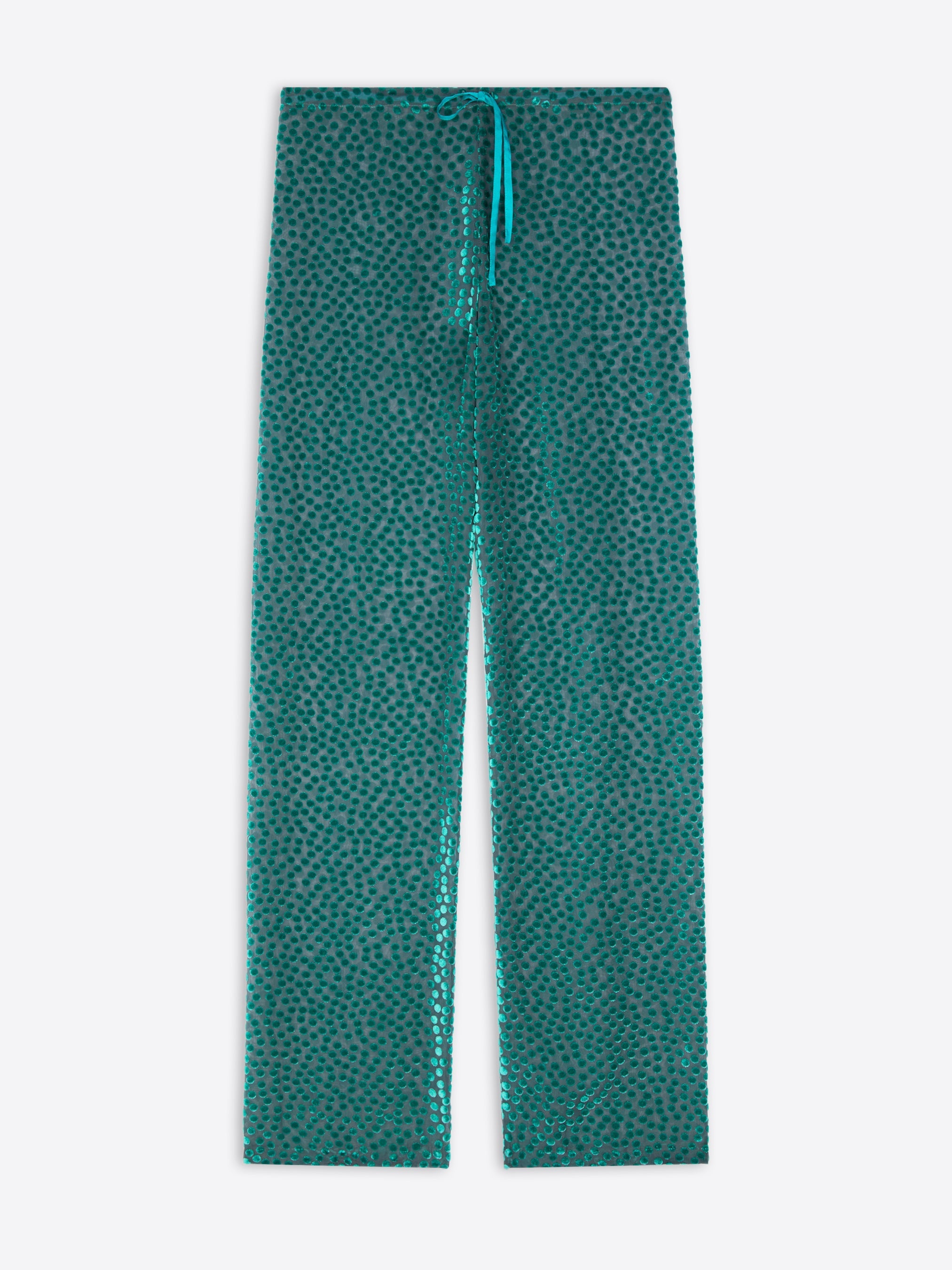 Fitted drawstring pants in double-dyed viscose and silk devore with polka dot pattern. DETAILS - 67% Viscose, 33% Silk. - Double-dyed viscose and silk devore with polka dot pattern. - Tight fit. Low rise. Drawstring waistband. - Ref: 252-010908-2039