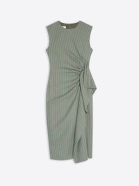 Tight fit sleeveless dress with draping, in striped virgin wool crepe. DETAILS - 99% Wool, 1% Cotton. - Tight fit. Midi length. Draped. Sleeveless. Round neckline. Back zip closure. - Ref: 261-011037-3306 SIZE AND FIT Model is 178 cm / 70 inches and wears size 36.