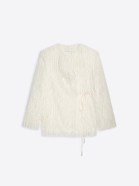 Collarless fringed jacket with lace closure. DETAILS - 100% Polyester. Lining: 100% Viscose. - Loose fit. Collarless. Lace closure detail. - Ref: 252-010263-2031 SIZE AND FIT Model is 178 cm / 70 inches and wears size M.