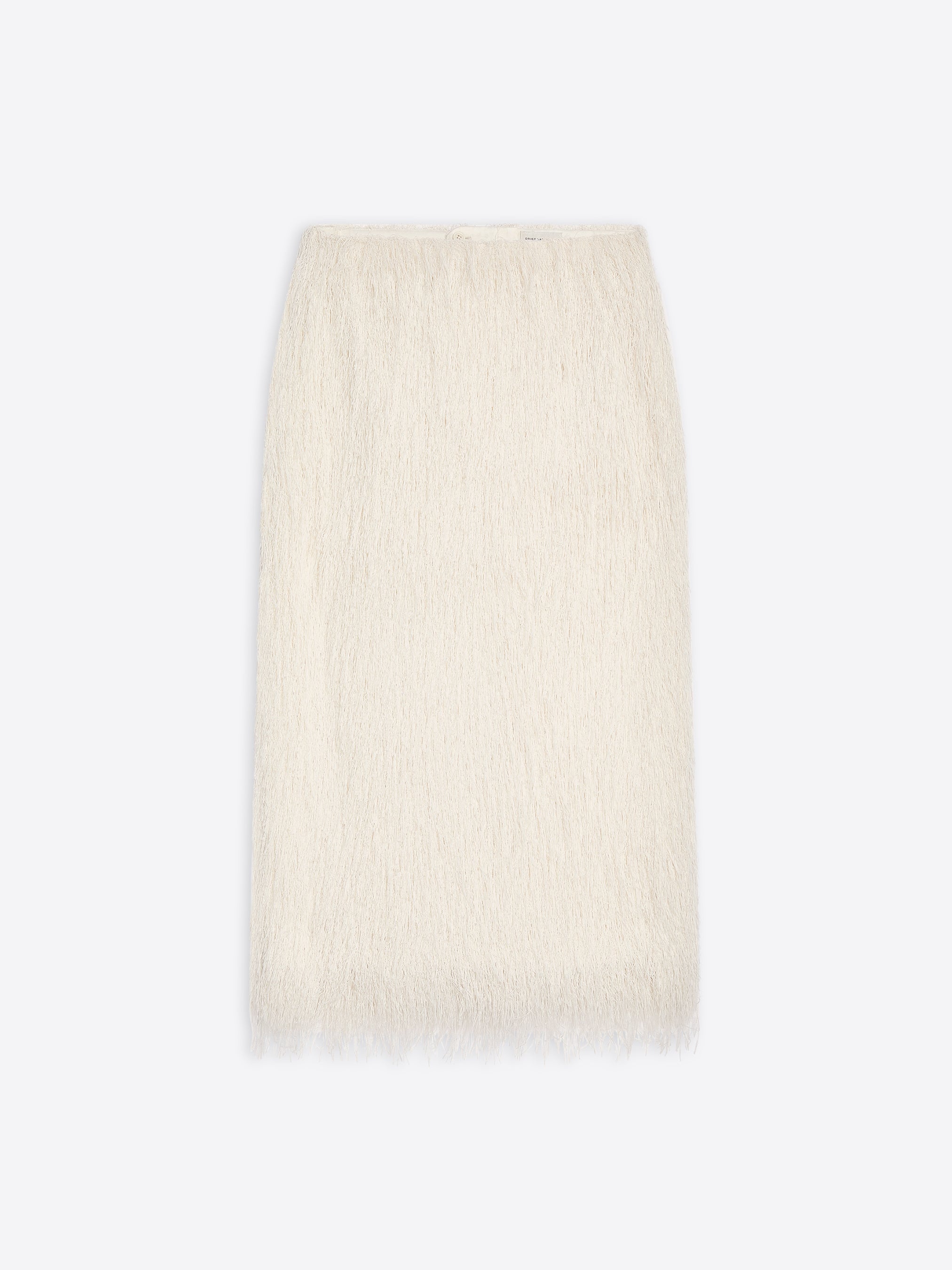 Regular fit midi fringed skirt. DETAILS - 100% Polyester. Lining: 100% Viscose. - Lightweight fringed fabric. - Regular fit. Mid rise. Midi length. Back button closure. - Ref: 252-010860-2031 SIZE AND FIT Model is 178 cm / 70 inches and wears size 34.
