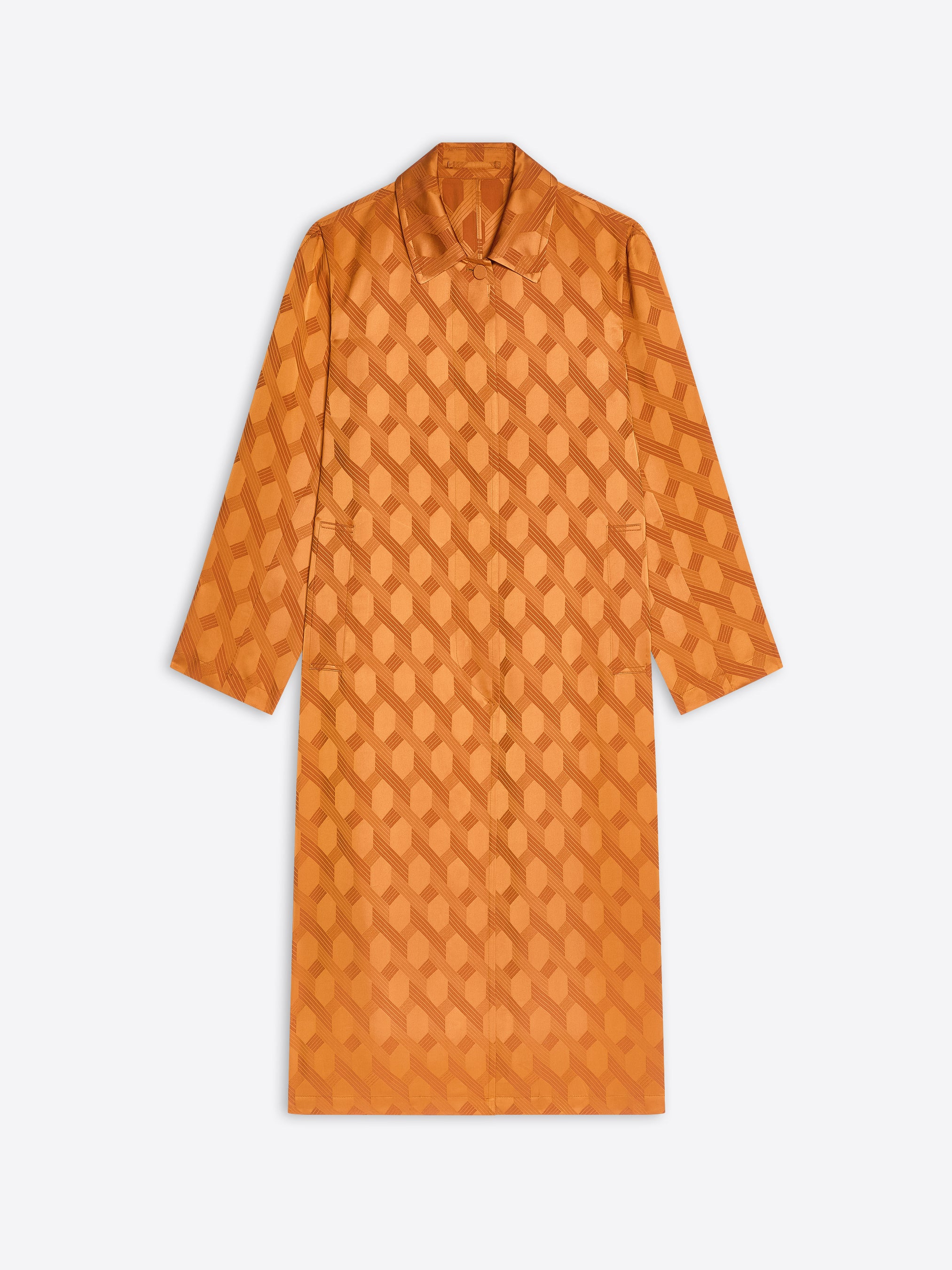 Loose fit mac coat in viscose and silk jacquard, with Chain motif. DETAILS - 68% Viscose, 32% Silk. - Jacquard Chain motif. - Loose fit. Ankle length. Front slit pockets. Front button closure. - Ref: 252-010203-2287 SIZE AND FIT Model is 178 cm / 70 inches and wears size 38.