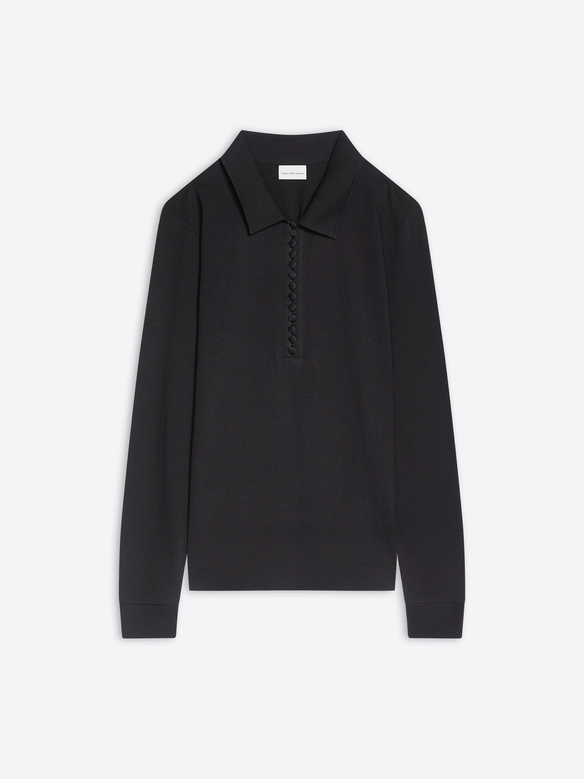 Fitted long-sleeved polo shirt in jersey cotton, with fabric-covered buttons. DETAILS - 100% Heavyweight Cotton. - Tight fit. Long sleeves. Polo neckline. Front fabric-covered button closure. - Ref: 252-011115-2603 SIZE AND FIT Model is 178 cm / 70 inches and wears size S.