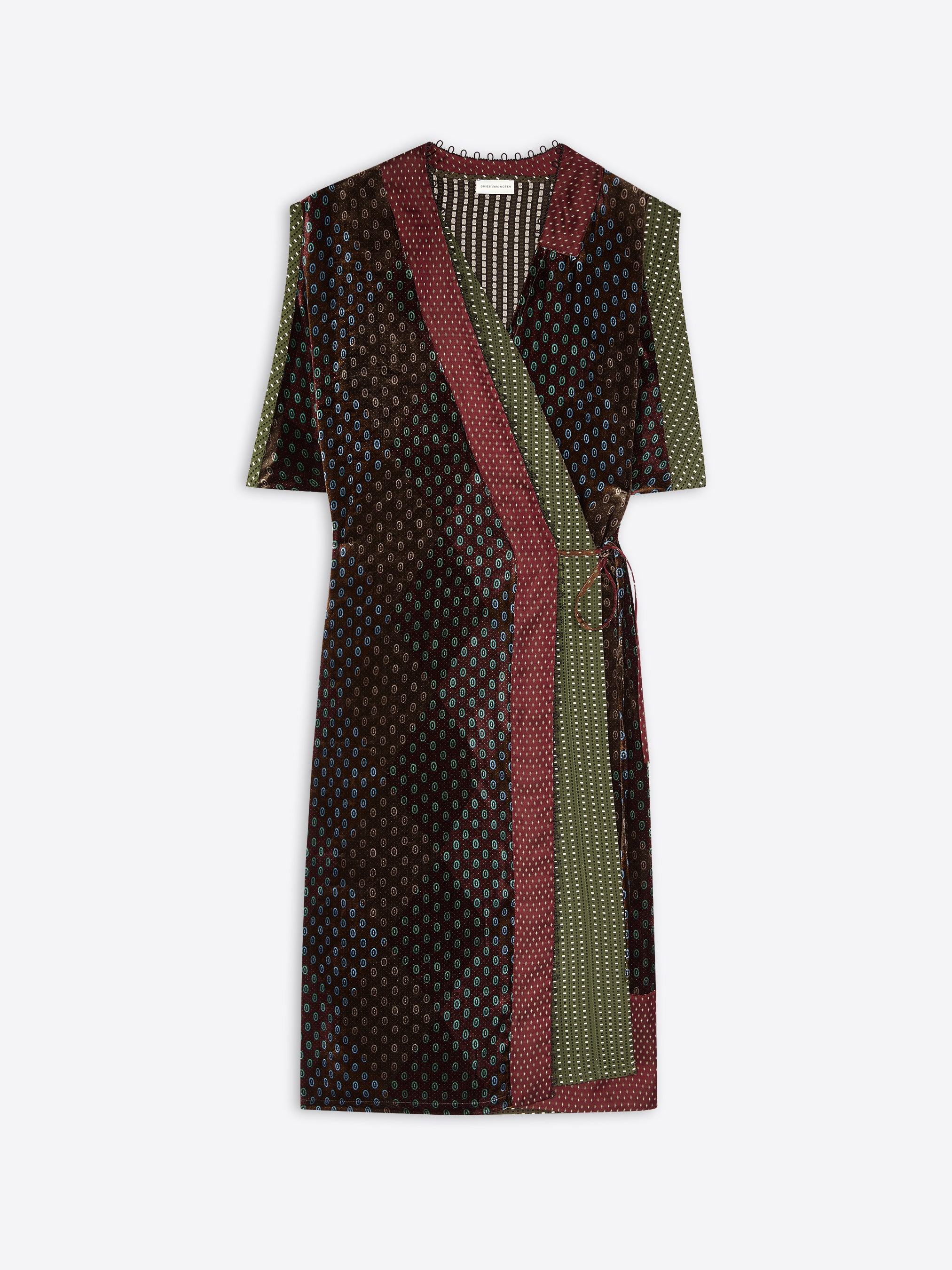 Regular fit knee-length dress in multi-layered viscose silk velvet, with Tie print and Argyle pattern. DETAILS - 87% Viscose, 13% Silk. - Tie print with Argyle pattern. - Regular fit. Knee length. Sleeveless. V neckline. Contrast stripe panels. Hidden side zip closure. - Ref: 252-011087-2254 SIZE AND FIT Model is 178 cm / 70 inches and wears size 38.