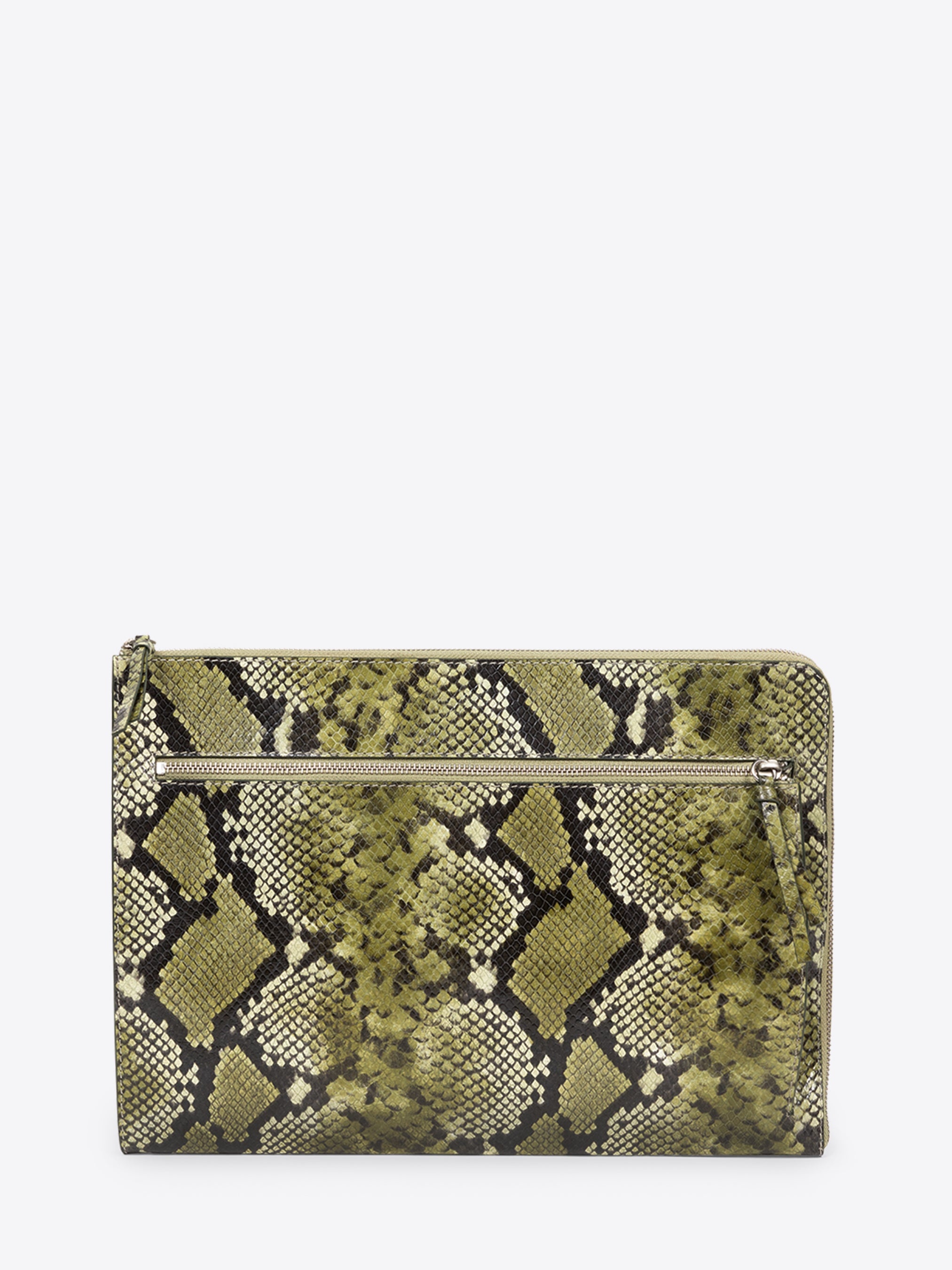 Zip around laptop case in python printed leather. DETAILS - 100% Leather. - Printed python on leather base. - Extra zipped pocket. - Ref: 242-022106-309