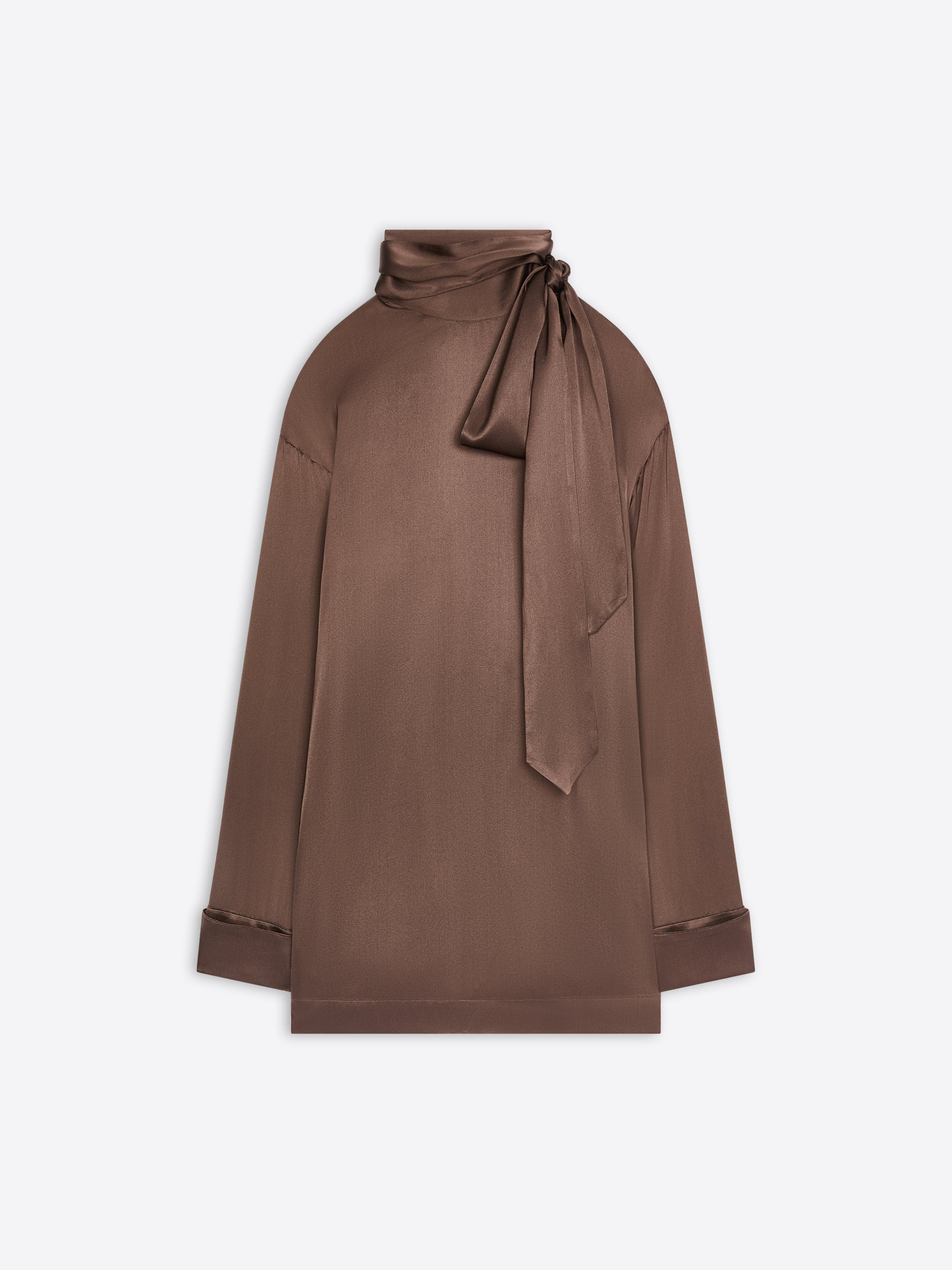 Loose fit blouse with back pussy-bow collar and pleats, in satin silk. DETAILS - 94% Silk, 6% Elastane. - Loose fit. Back pussy-bow collar and pleats. Buttoned cuffs. - Ref: 252-010779-2032 SIZE AND FIT Model is 178 cm / 70 inches and wears size M.