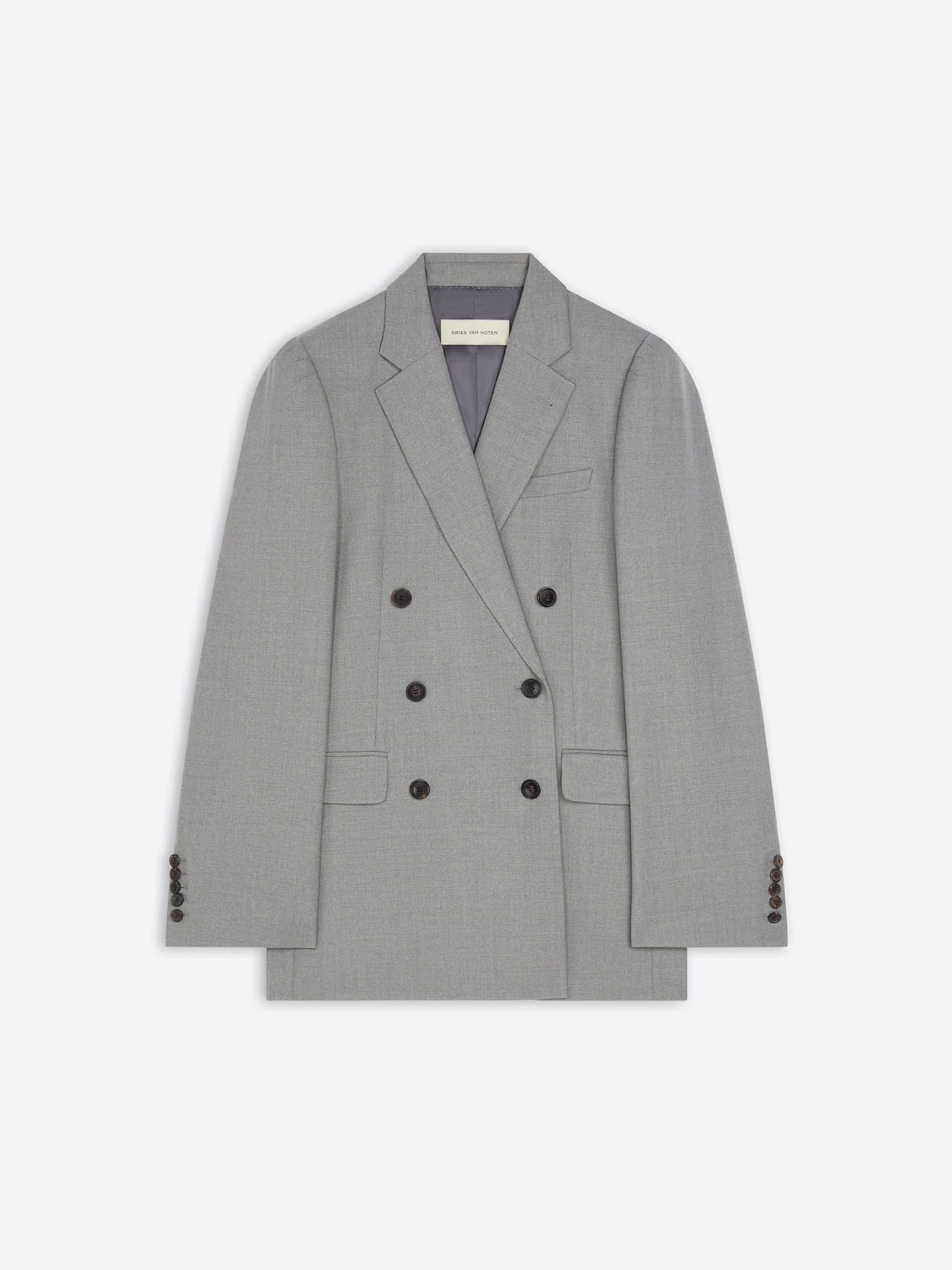 Oversized fit double-breasted blazer in merino wool, with accentuated shoulders and darted puffed sleeves. DETAILS - 93% Wool, 7% Elastane. Lining: 100% Viscose. - Oversized fit. Accentuated shoulders. Darted puffed sleeves. Double-breasted. Front flap pockets and welt pocket at chest. Buttoned cuffs. Double vent. Front button closure. - Ref: 252-010431-2061 SIZE AND FIT Model is 178 cm / 70 inches and wears size 36.