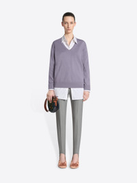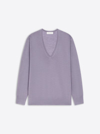 Loose fit V-neck sweater in fine merino wool. DETAILS - 100% Merino Wool. - Loose fit. V neckline. - Ref: 252-011202-2700 SIZE AND FIT Model is 178 cm / 70 inches and wears size M.