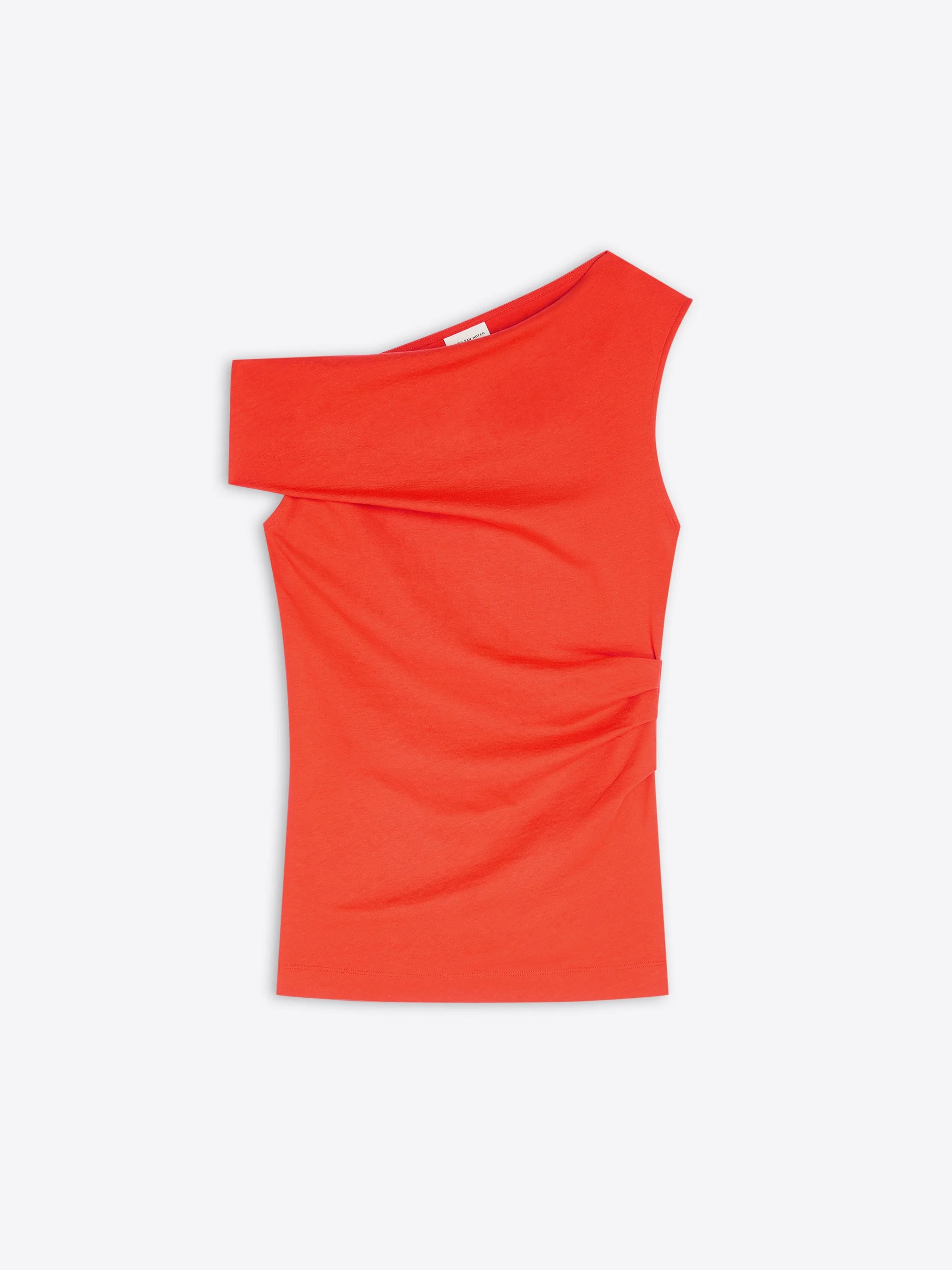 Fitted off-shoulder top in heavyweight cotton jersey, with gathering detail. DETAILS - 100% Heavyweight Cotton. - Regular fit. Off-shoulder. Sleeveless. - Ref: 261-011108-3603 SIZE AND FIT Model is 178 cm / 70 inches and wears size S.