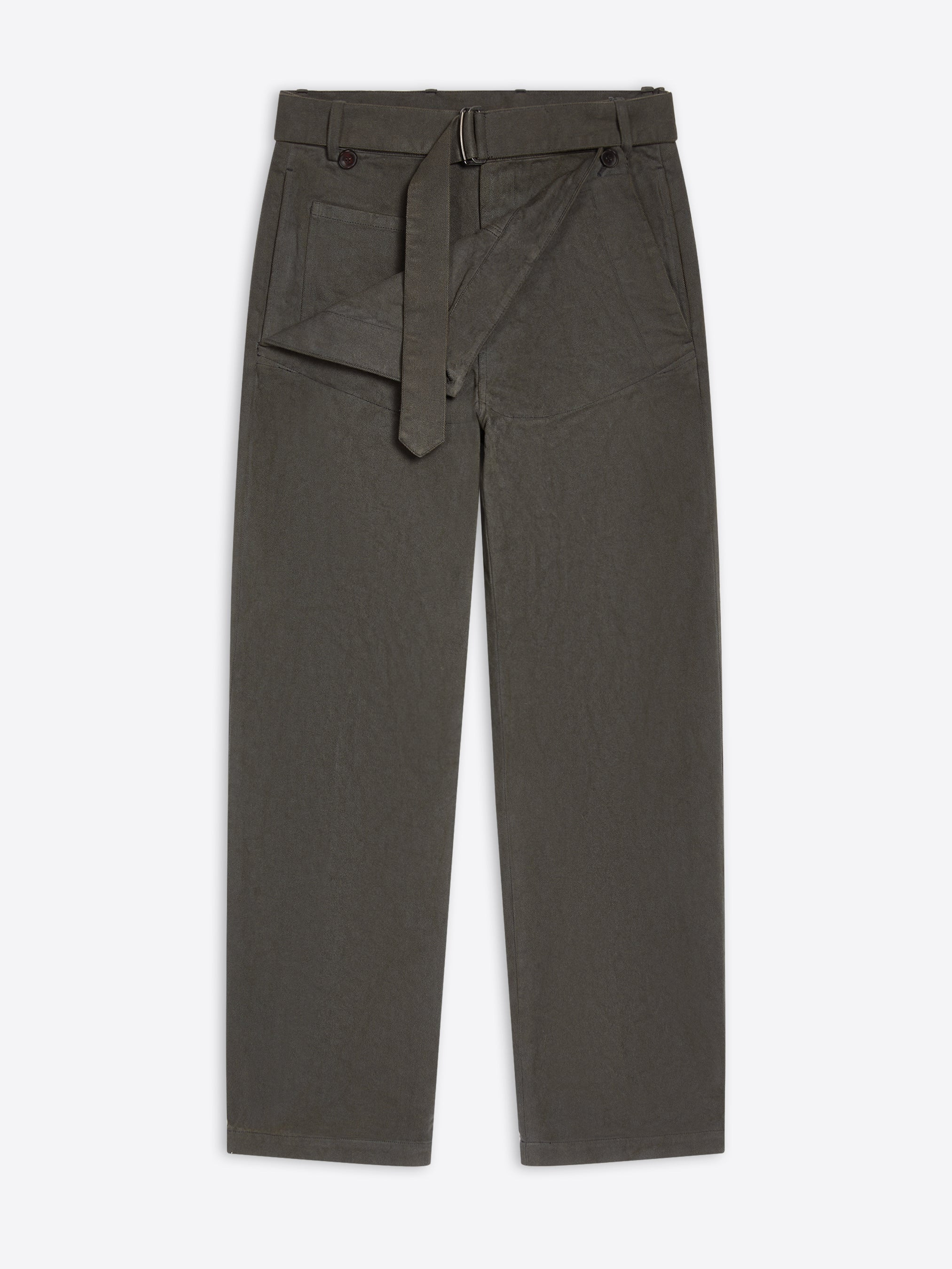 Regular fit straight-leg sailor pants with buttonable front flap, in overdyed cotton twill. DETAILS - 100% Cotton. - Buttonable front flap. - Regular fit. Mid rise. Straight leg. Front patch pockets and back welt pockets. Belted. Front button closure. - Ref: 252-020985-2043 SIZE AND FIT Model is 189 cm / 74.5 inches and wears size 46.