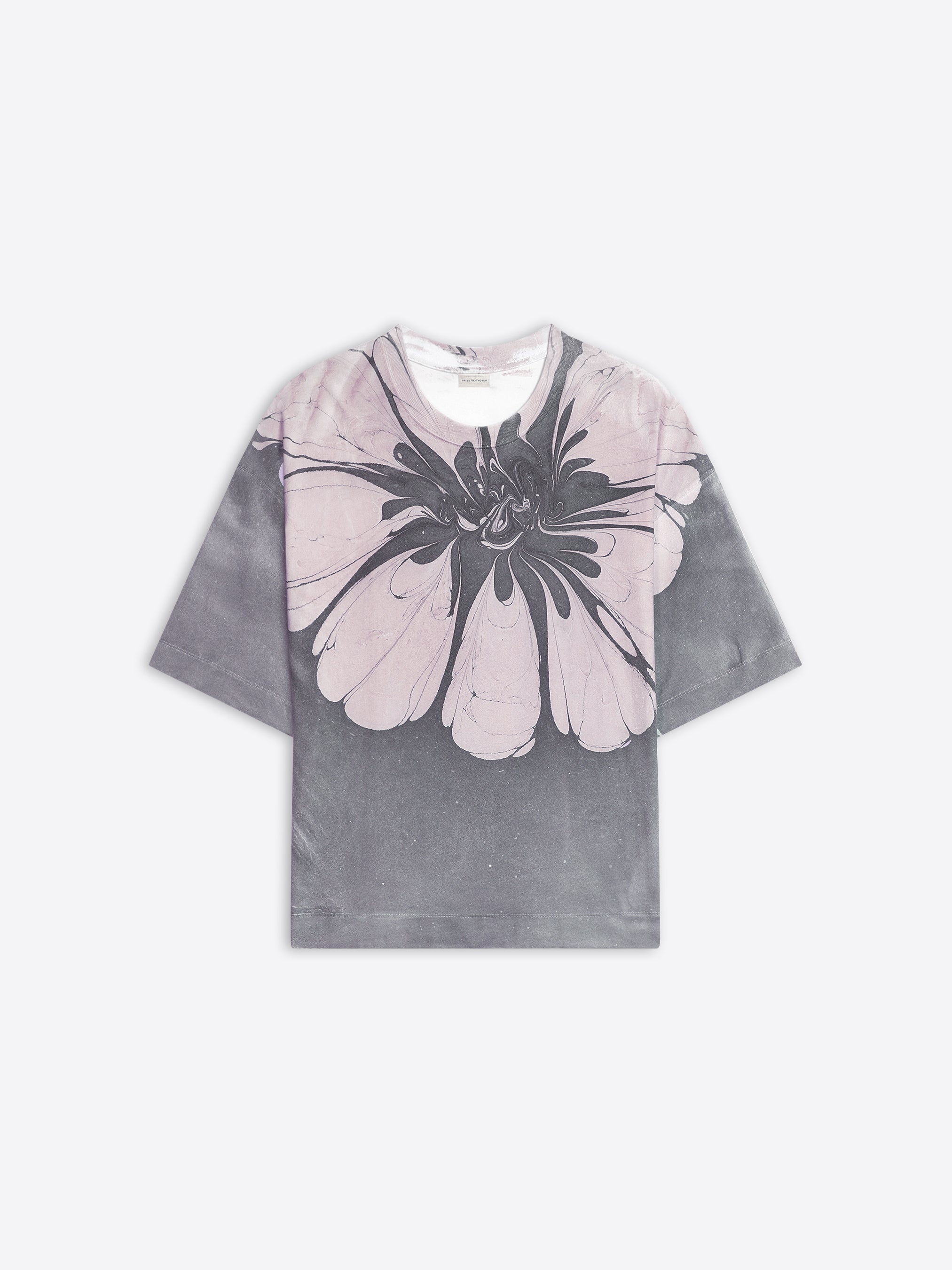 Oversized t-shirt in heavy cotton jersey with Placed Suminagashi Flower print. DETAILS - 100% Heavy Cotton. - Placed Suminagashi Flower print. - Oversized fit. Short sleeves. Crew neck. - Ref: 251-021114-1603 SIZE AND FIT Model is 188 cm / 74 inches and wears size M.