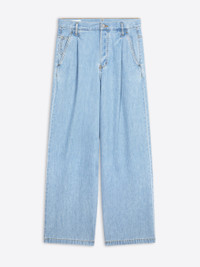 High rise wide leg denim pants with pleats. DETAILS - 100% Cotton. - Loose fit. High rise. Deep pleat. Five pockets. Belt loops. Front closure. - Ref: 2251-020923-1552 SIZE AND FIT Model is 189 cm / 74.5 inches and wears size 31.