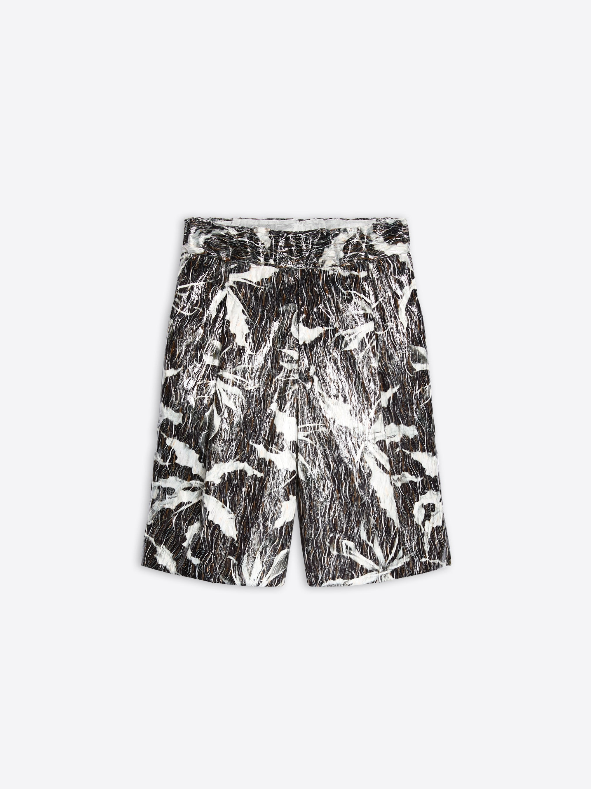 Loose fit wide bermuda shorts with pleats and elasticated waistband, with Flame Lily all-over print. DETAILS - 61% Polyester, 29% Polyurethane Fiber, 6% Silk, 4% Nylon. - Flame Lily all-over print. - Loose fit. wide single pleat. Side slit pockets and back jetted pockets. Elasticated waistband. - Ref: 252-020953-2076 SIZE AND FIT Model is 189 cm / 74.5 inches and wears size M.