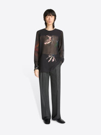Loose fit collarless shirt in sheer viscose, with Flame Lily print. DETAILS - 100% Viscose. - Flame Lily print. - Loose fit. Round neckline. Buttoned cuffs. Back collar button closure. - Ref: 252-020774-2004 SIZE AND FIT Model is 189 cm / 74.5 inches and wears size 48.