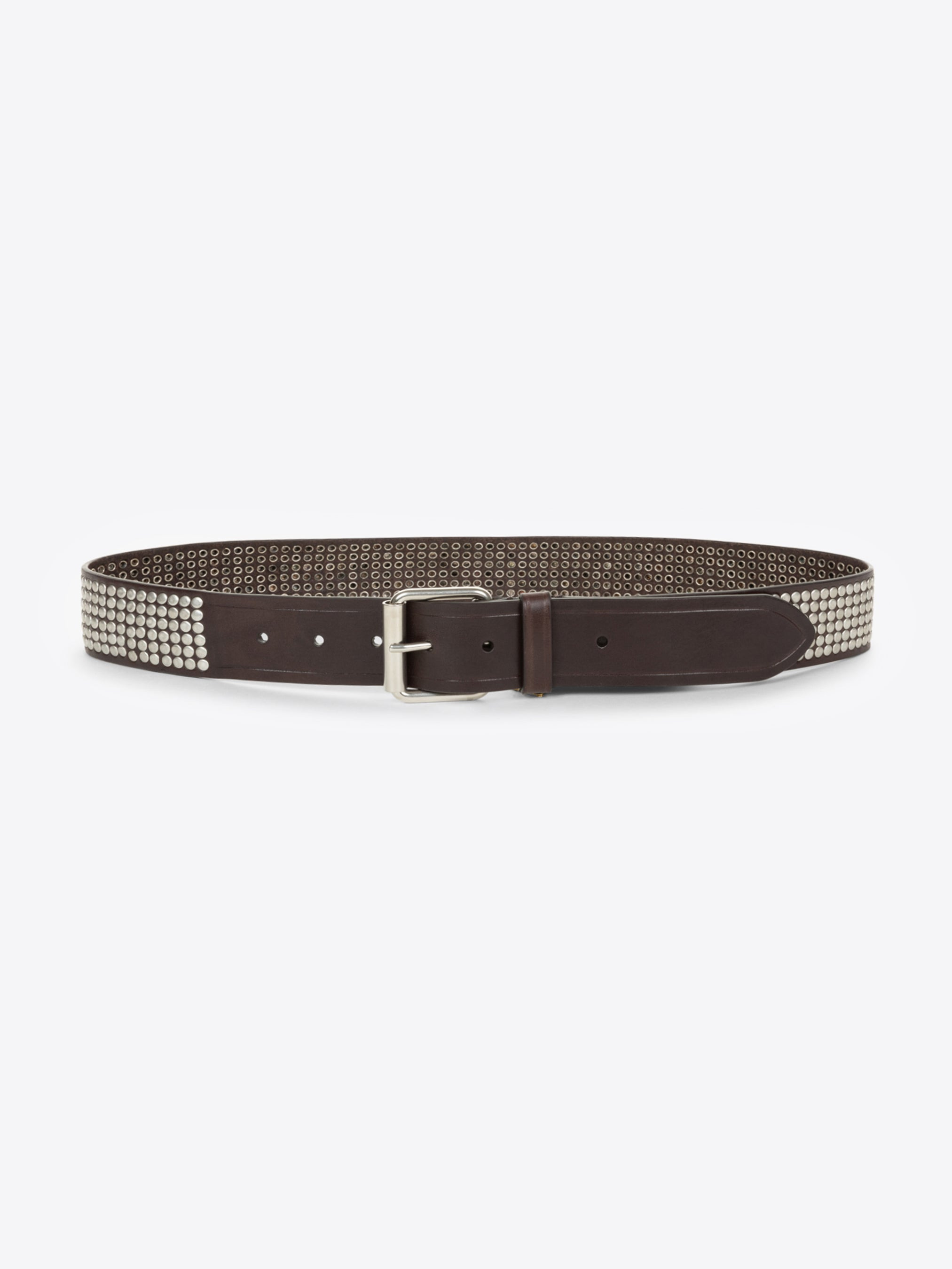 Classic belt in leather, with allover metal studs. DETAILS - 100% Leather. - Studded. - Buckle fastening. Eyelets. - Ref: 252-021403-102 SIZE AND FIT Model is 189 cm / 74.5 inches and wears size 80.