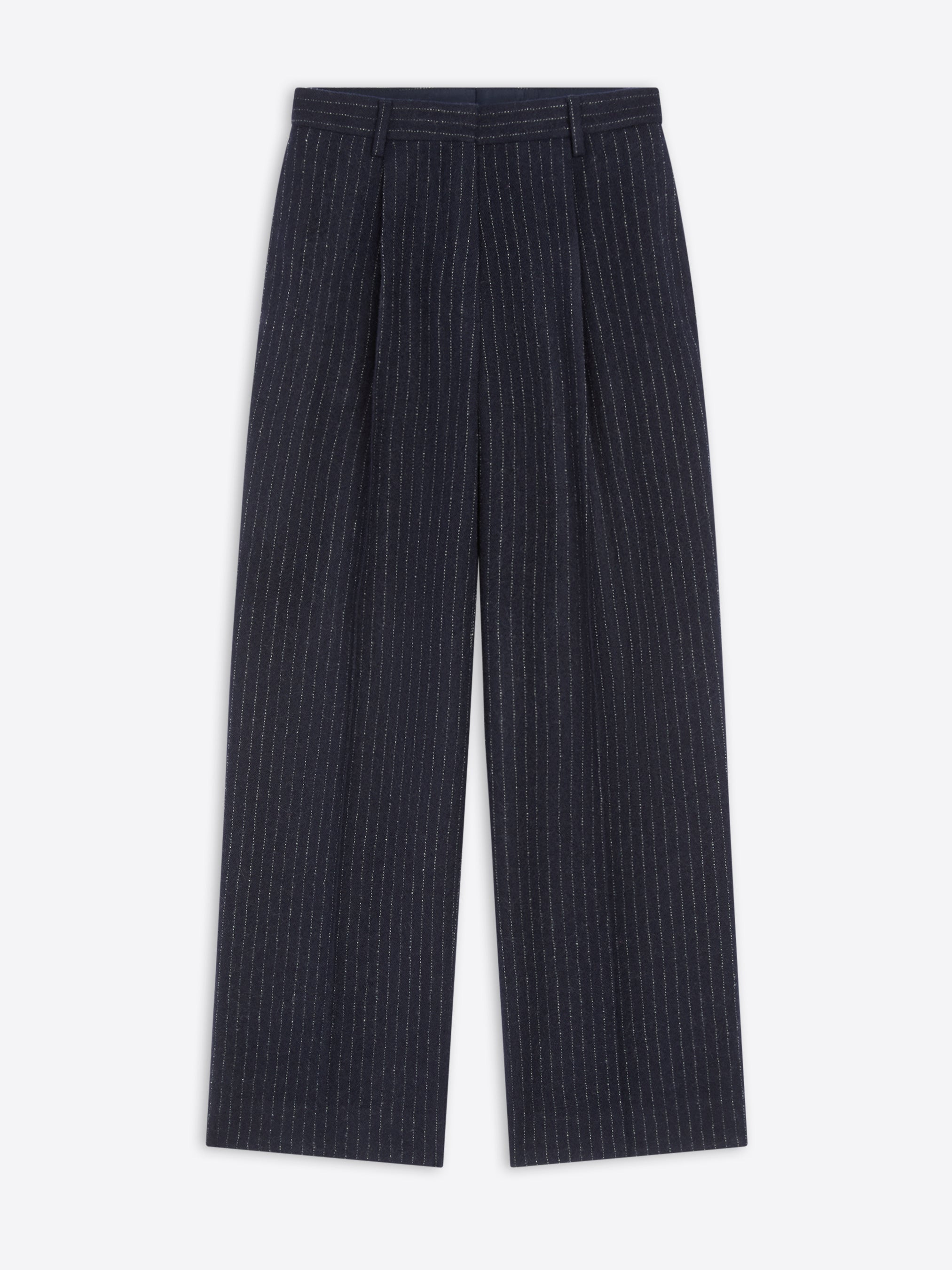 Regular fit tailored pants, in washed pinstripe wool. DETAILS - 100% Wool. - Regular fit. Straight leg. Pleated. Side slit pockets and back jetted pockets. Belt loops. Front button and zip closure. - Ref: 252-010922-2042 SIZE AND FIT Model is 178 cm / 70 inches and wears size 36.