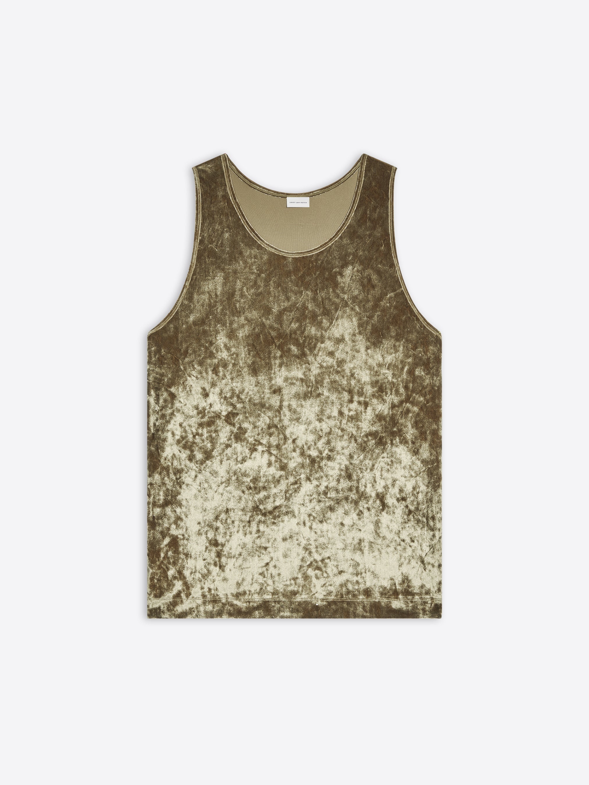 Tight fit tank top in crushed velvet jersey. DETAILS - 94% Polyester, 6% Polyurethane Fiber. - Tight fit. Sleeveless. - Ref: 252-021131-2329 SIZE AND FIT Model is 189 cm / 74.5 inches and wears size M.