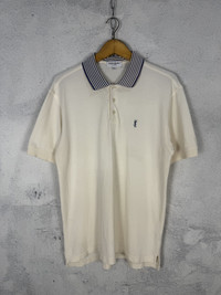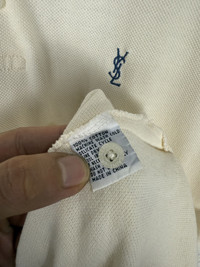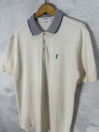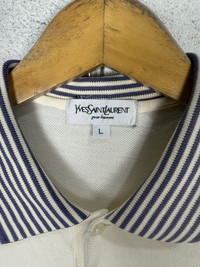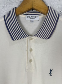 YSL Polo Shirt Broken White Color - Size: Tagged size S - Condition: Products are worn but in a great condition Any serious flaws have been photographed *** Don't worry about customs tax or fees. I always declare as "GIFT" and put the value item $10 - 20 *** Please pay close attention to measurements provided. Don't rely on tag size as stretched or shrunk & vintage sizes Don't directly translate the modern sizes The best way to ensure a correct fit is to compare our measurements with the measurements of a similar item that you know fits you well *** Please leave phone number for shipping details If you have any question, don't hesitate to ask RS83.150