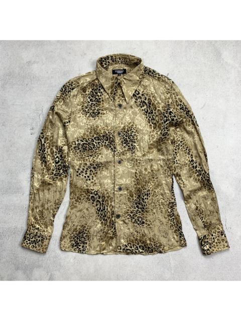 Tornado Mart Gold Leopard Cheetah Jacquard Button Up Shirt