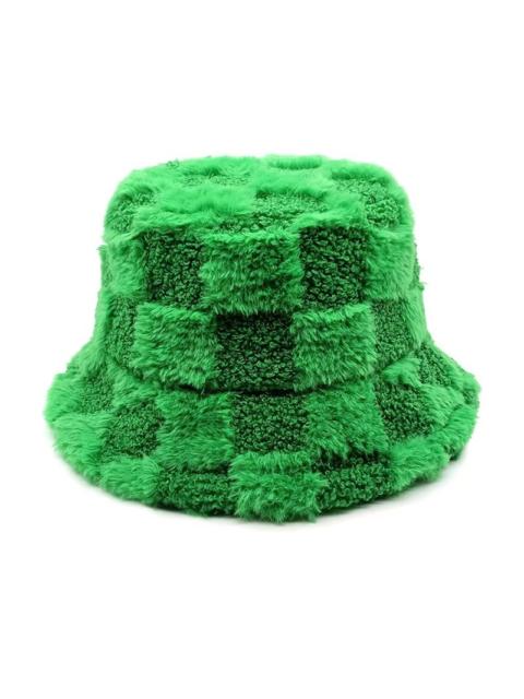 High Quality Trendy Chessboard Bucket Hat Green Panama Hat String Adjustable Warm Winter Hat