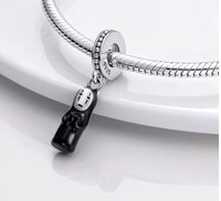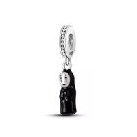 925 Sterling Silver Black Halloween No Face Ghost Pendant Bracelet DIY Crystal Charms Beads Jewelry