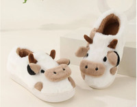 Brown Milk Cow Cute Plush Cotton Slippers Women Comfort Non Slip Home Shoes Cartoon Anime