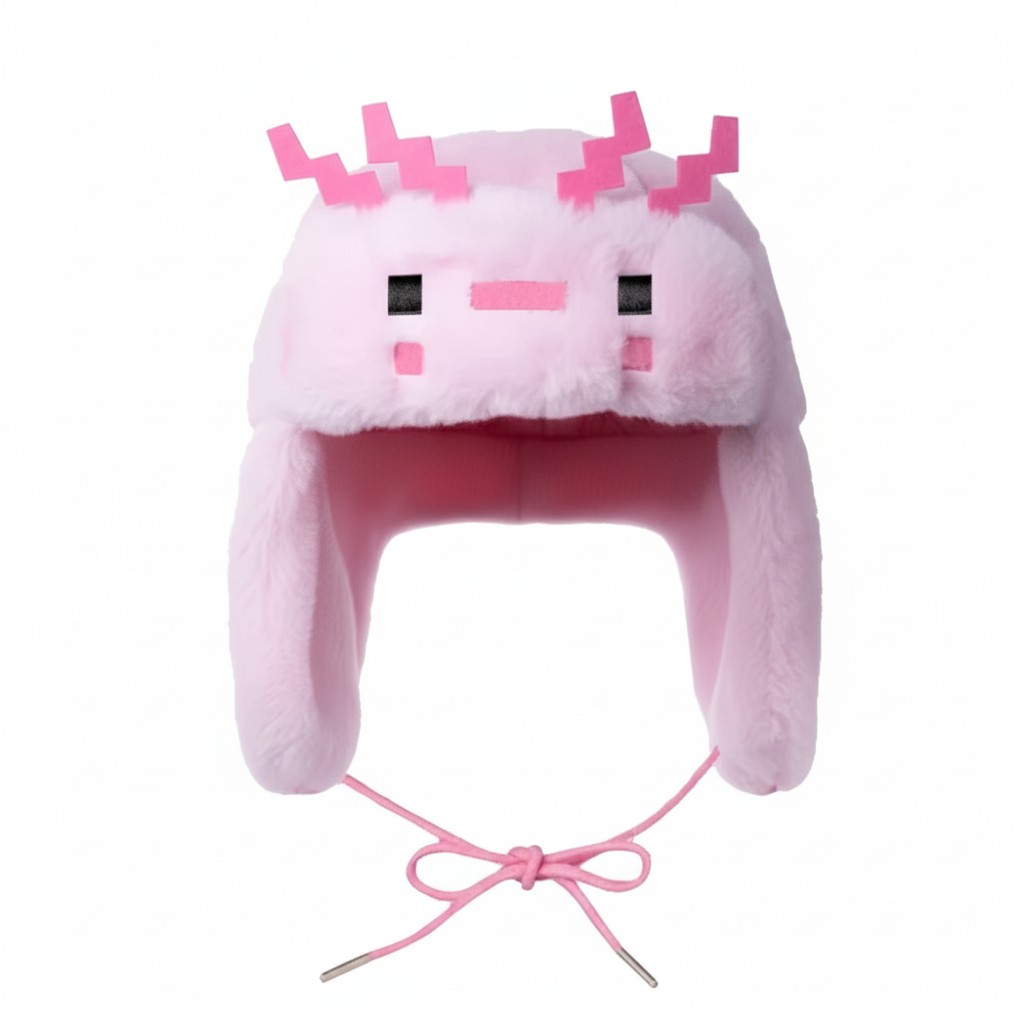 Cartoon Anime Pink Axolotl Minecraft Plush Ushanka Hat Cute Y2K Warm Earflap Trapper Hat Bomber