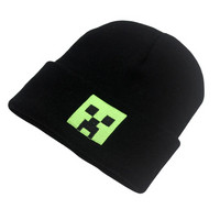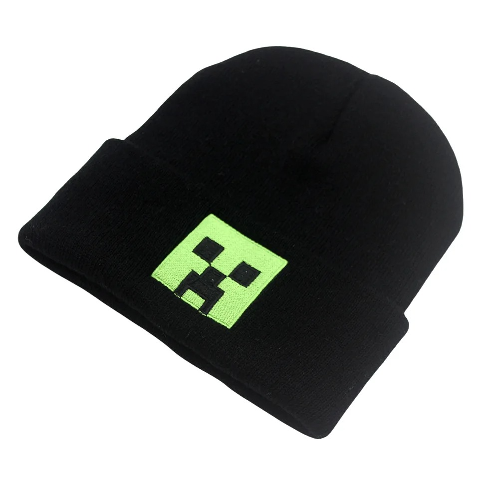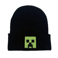 Cartoon Minecraft Creeper Black Embroidered Hat Men Women Warm Knitted Bonnet Cap Soft Wool Beanies