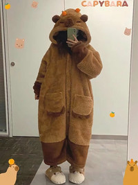 Cute Anime Capybara Brown Kawaii Robe Cosplay Costume Adult Warm Pajamas