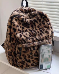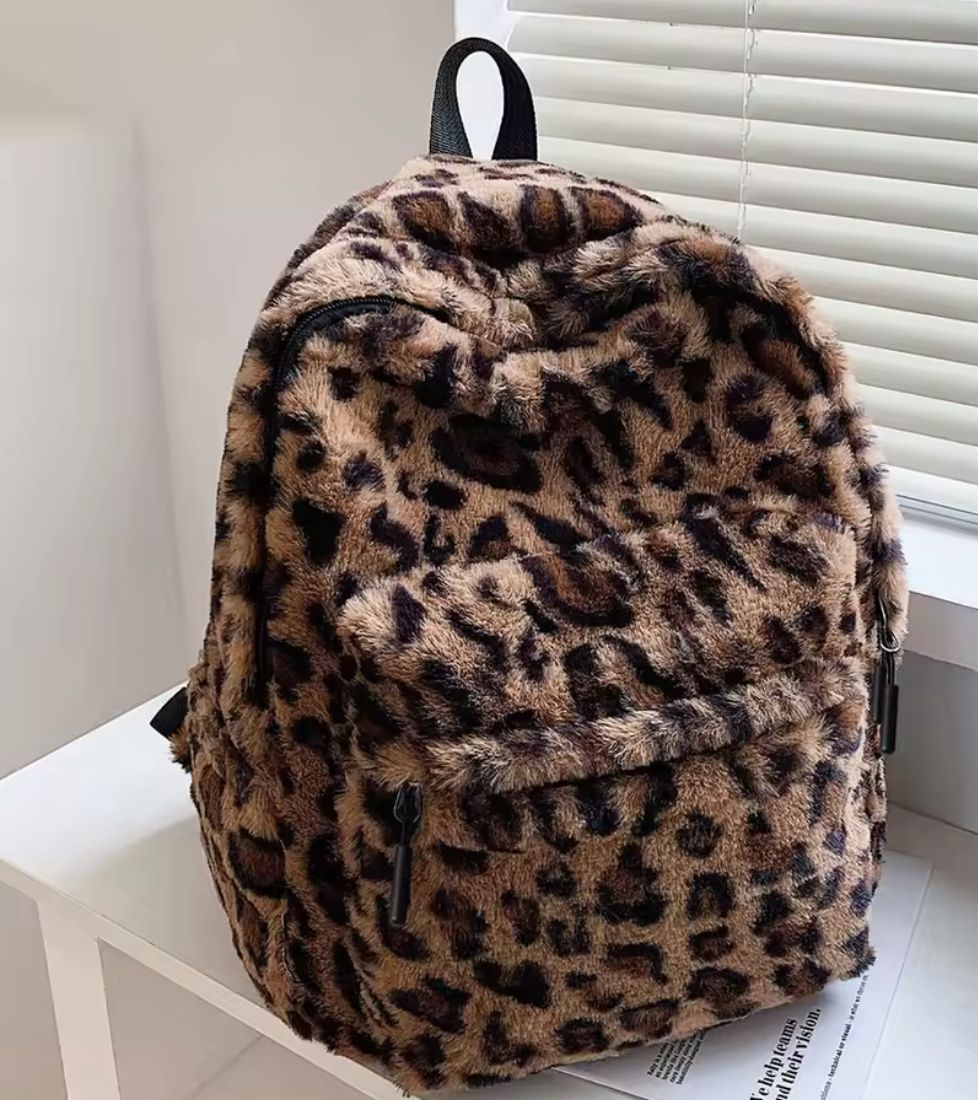 Exquisite Leopard Print Women Backpack Brown Good Size Soft Plush Bag Zipper Adjustable