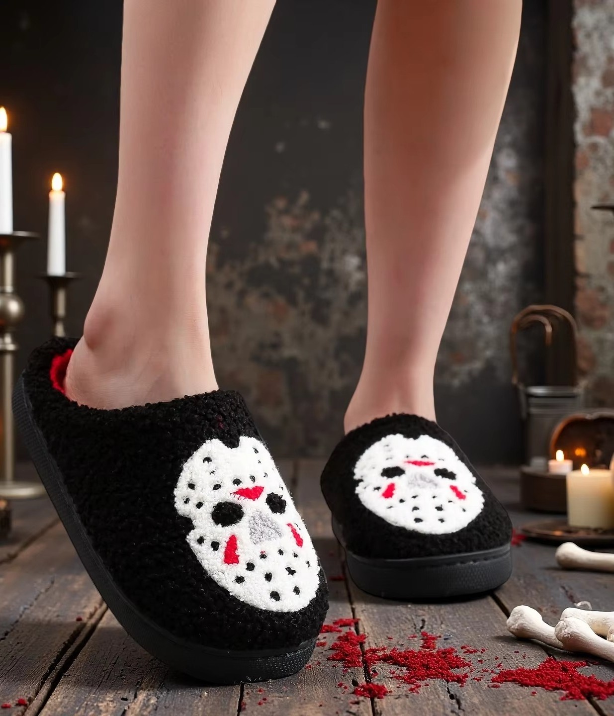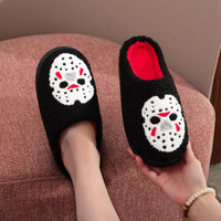 Horror Mask Ghost Cute Plush Cotton Slippers Women Comfort Non Slip Home Shoes Cartoon Anime
