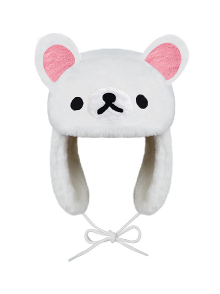 Japanese Cartoon Anime Rilakkuma Ushanka White Hat Cute Y2K Warm Winter Hat