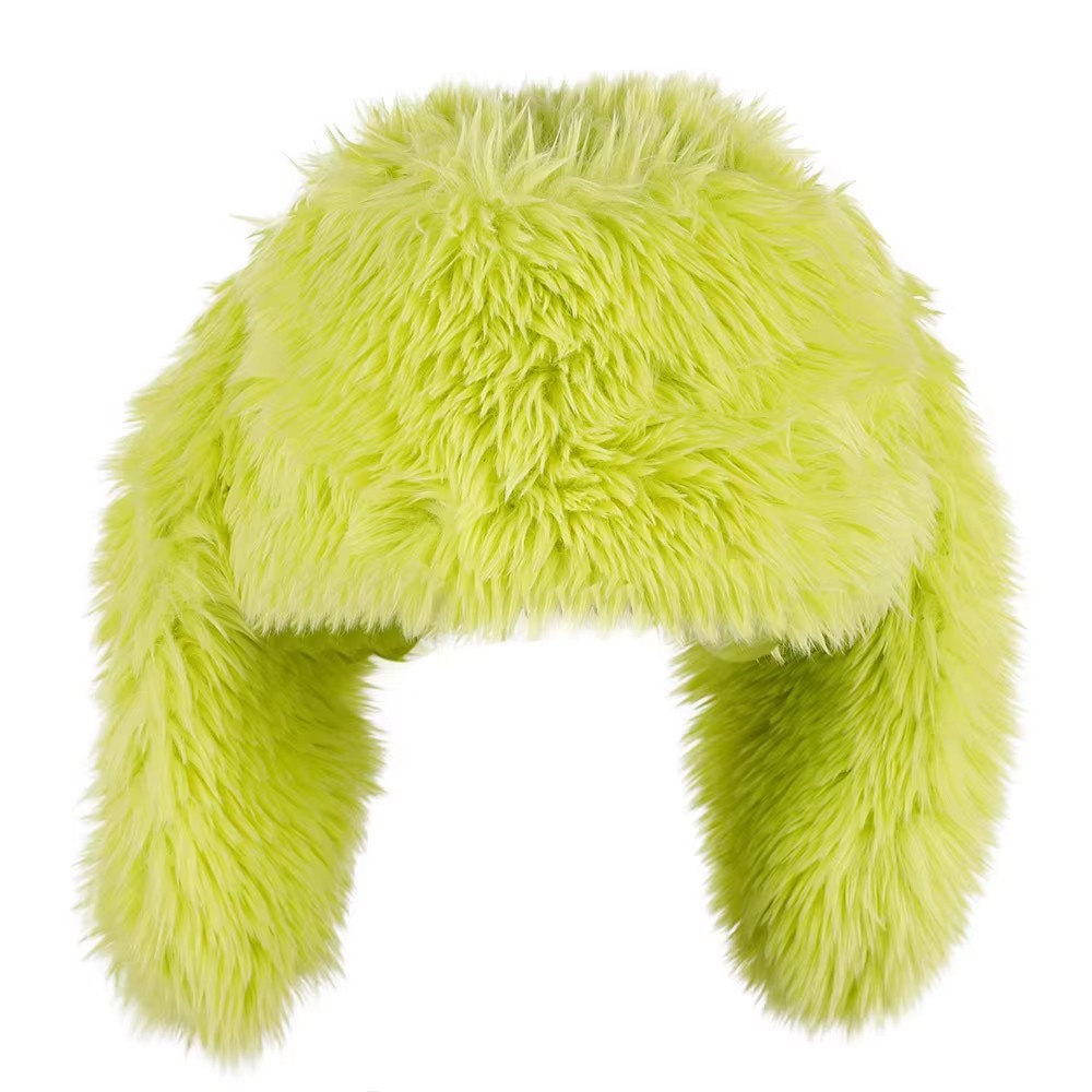Luorescent Green Ultra Soft Thick Fleece Fur Faux Ushanka Hat Cute Y2K Warm Earflap Trapper Hat