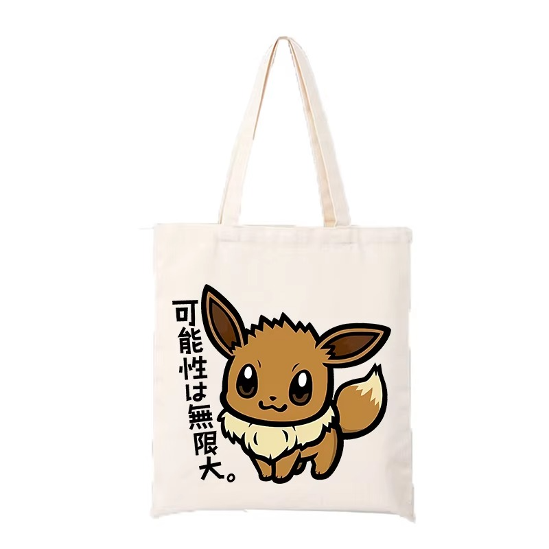 Pokemon Canvas Bags Anime Printed Eevee Figures Shopping Tote Bags