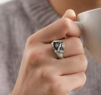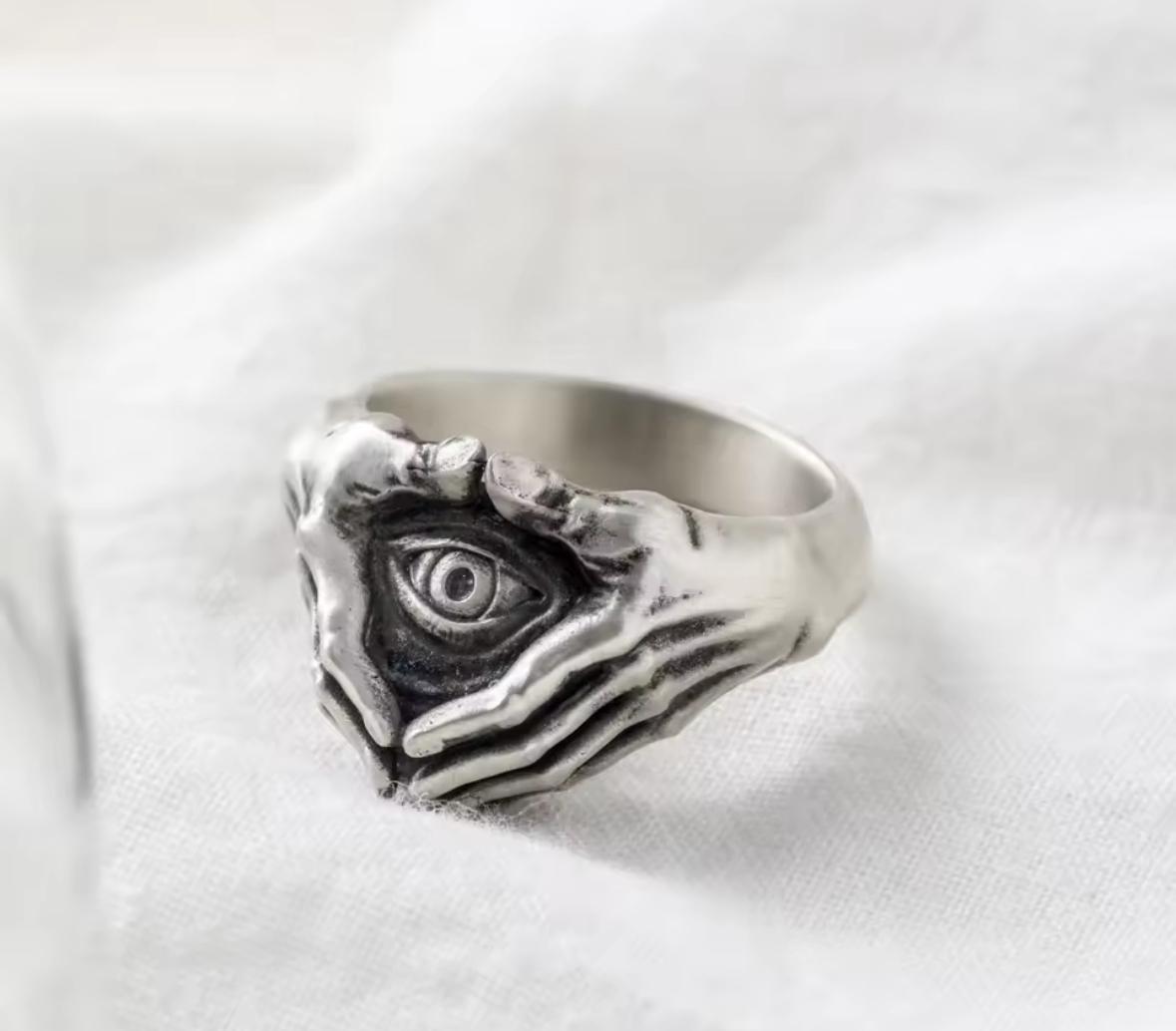 Rare Retro Gothic Eclipsed Omnisigh Guardian Eye & Hands Size Adjustable Ring