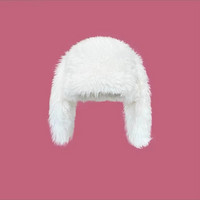 White Ultra Soft Thick Fleece Fur Faux Ushanka Hat Cute Y2K Warm Earflap Trapper Hat
