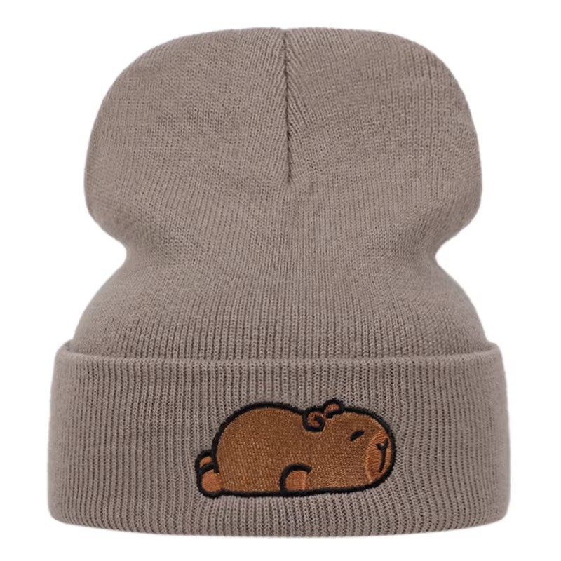 Y2K Anime Capybara Khaki Beanies Winter Warm Hat Cute Embroidery Cap Adult Kid
