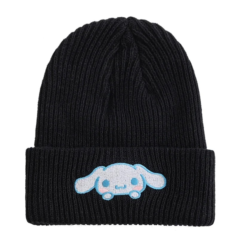 Y2K Anime Sanrio Black Cinnamoroll Dog Beanies Winter Warm Hat Cute Embroidery Cap Adult Kid
