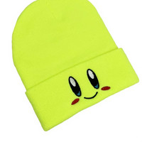 Y2K Anime Yellow Kirby Star Beanies Winter Warm Hat Cute Embroidery Cap Adult Kid