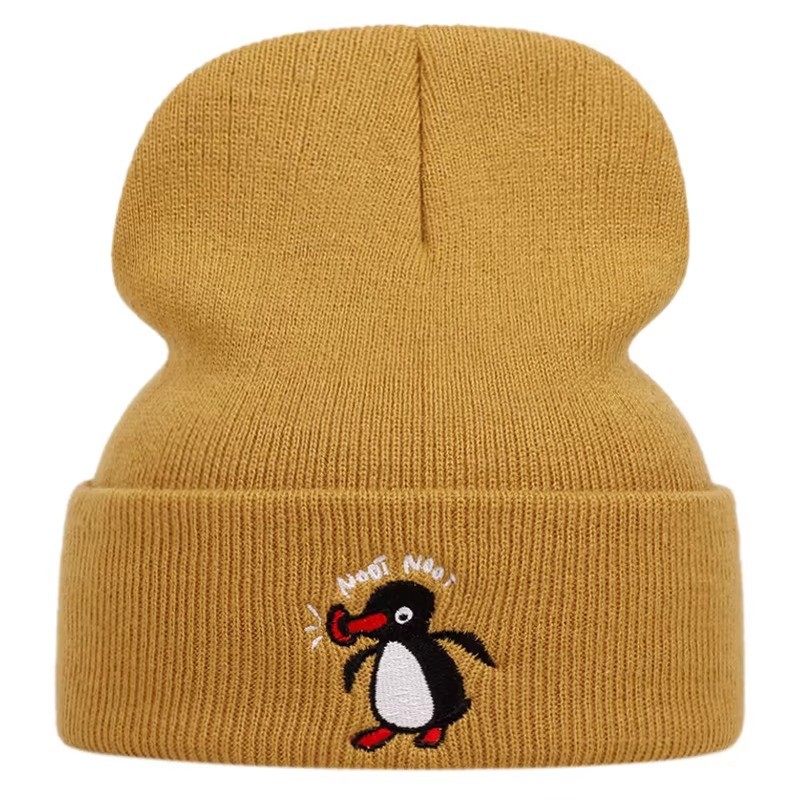 Y2K Cute Penguin Pingu Khaki Beanies Winter Warm Hat Cute Embroidery Cap Adult Kid