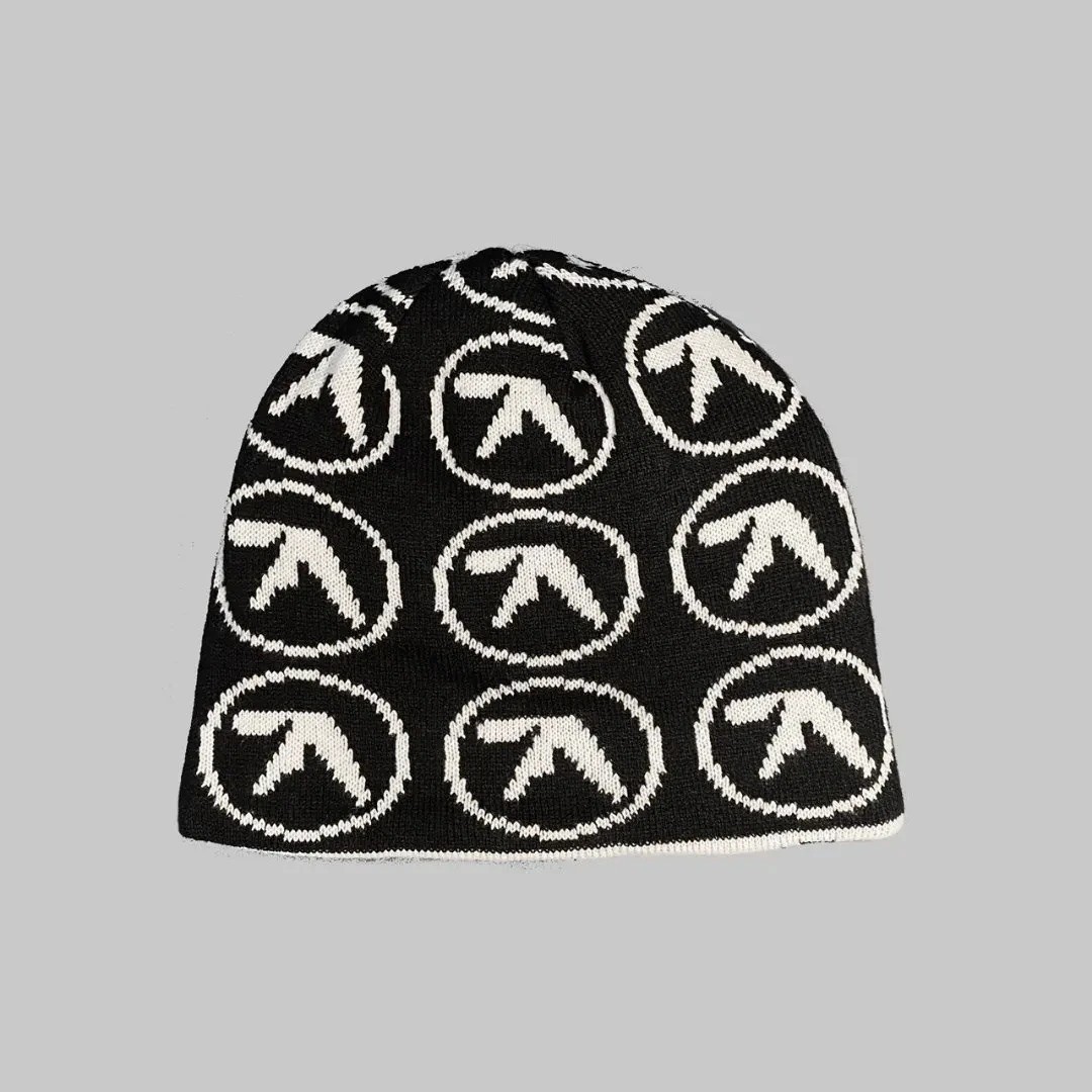 Y2K Korean Fashion Kpop Aphex Twin Beanies Hip Hop Trendy Hat OOTD Black Embroidery Cap Adult Kid