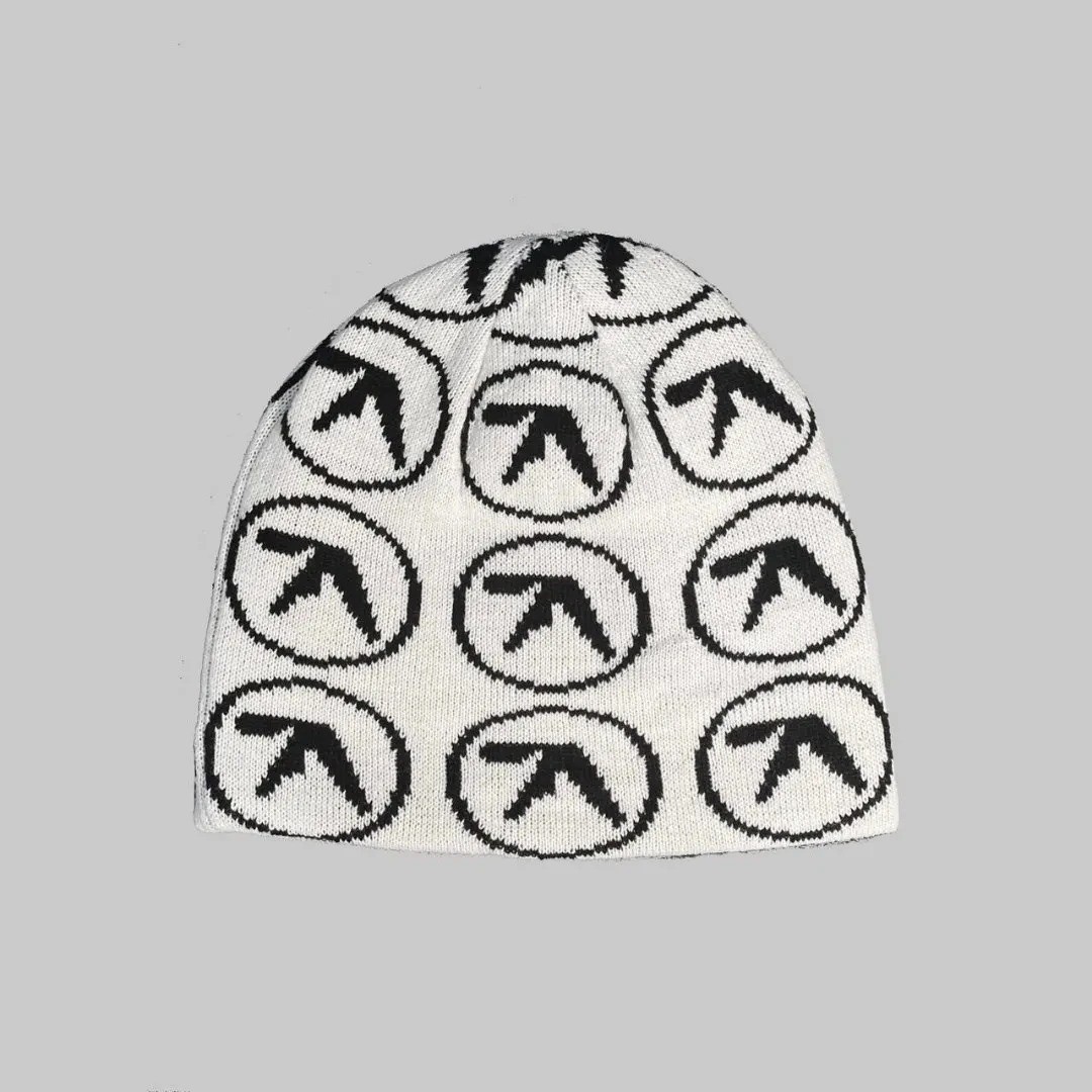 Y2K Korean Fashion Kpop Aphex Twin Beanies Hip Hop Trendy Hat OOTD White Embroidery Cap Adult Kid