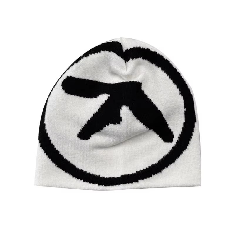Y2K Kpop Aphex Twin Beanies Winter Warm Hat Cute Embroidery White Cap Adult