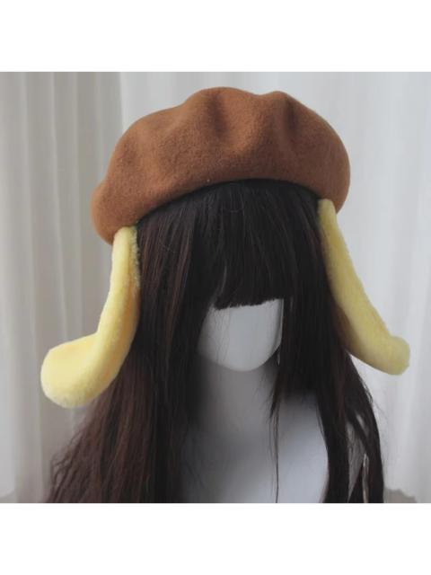 JK Lolita Japanese Y2K Cute Kawaii Dog Ears Yellow Hat Pompompurin Hair Accessories