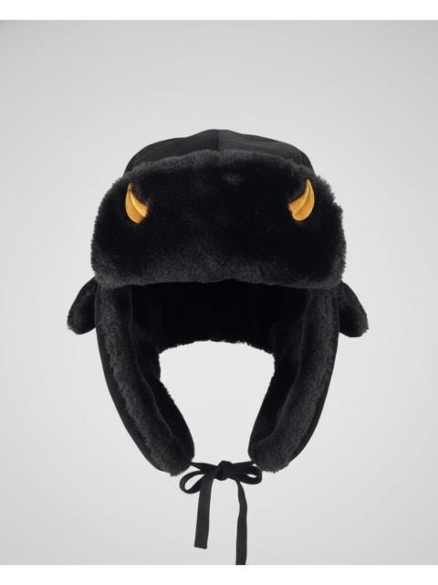 Swag Anime Bull Cow Horn Fur Warm Windproof Earflap Black Hat Trapper Hat