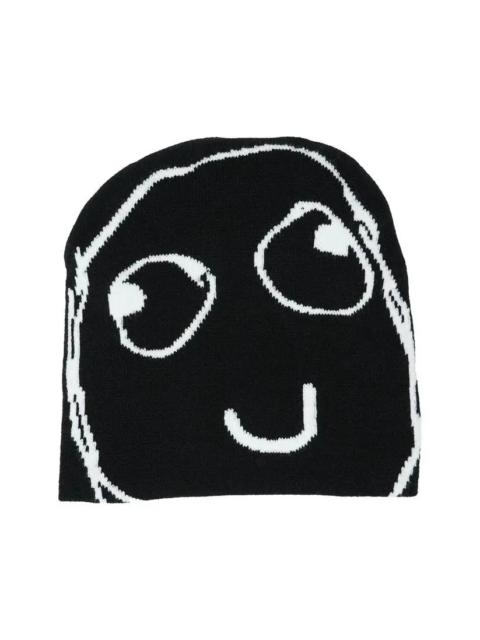 Y2K Kpop Aphex Twin Beanies Winter Warm Hat Cute Embroidery White Cap Adult