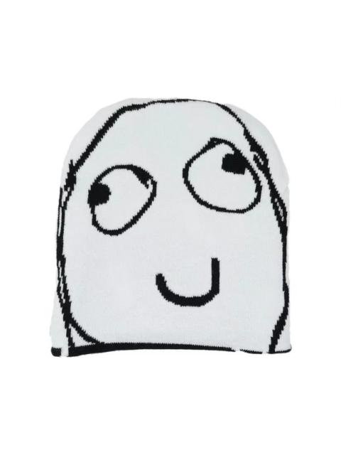 Y2K Kpop Aphex Twin Beanies Winter Warm Hat Cute Embroidery White Cap Adult