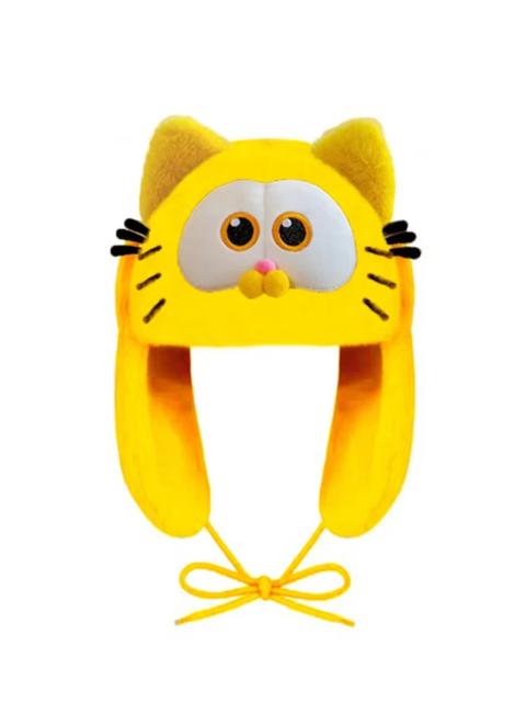 Cartoon Anime Yellow Garfield Cat Faux Fur Ushanka Hat Cute Y2K Warm Earflap Trapper Hat