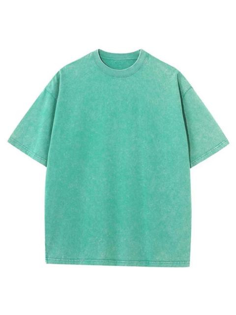 Retro Heavyweight Solid Green Color Short Sleeved Washed T-Shirt